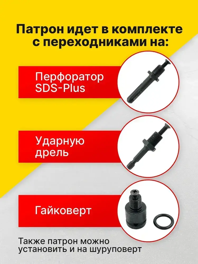 Быстрозажимный патрон для дрели, гайковерта, перфоратора1/2, 2-13 мм, с переходниками