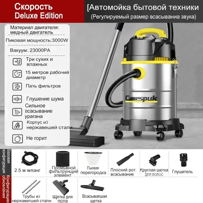CANESPUK Строительный пылесос 35 л, 3300 Вт