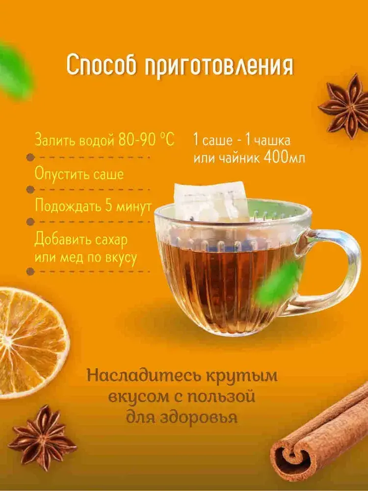 Чай чёрный в саше Глинтвейн Чайная ферма Камлёвъ, 16 шт