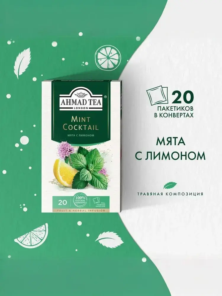 Чай в пакетиках травяной Ahmad Tea Mint Cocktail, 20 шт