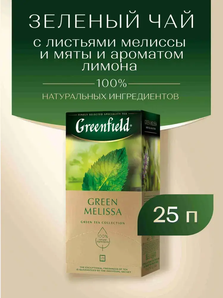 Чай в пакетиках зелёный Greenfield Green Melissa, 25 шт