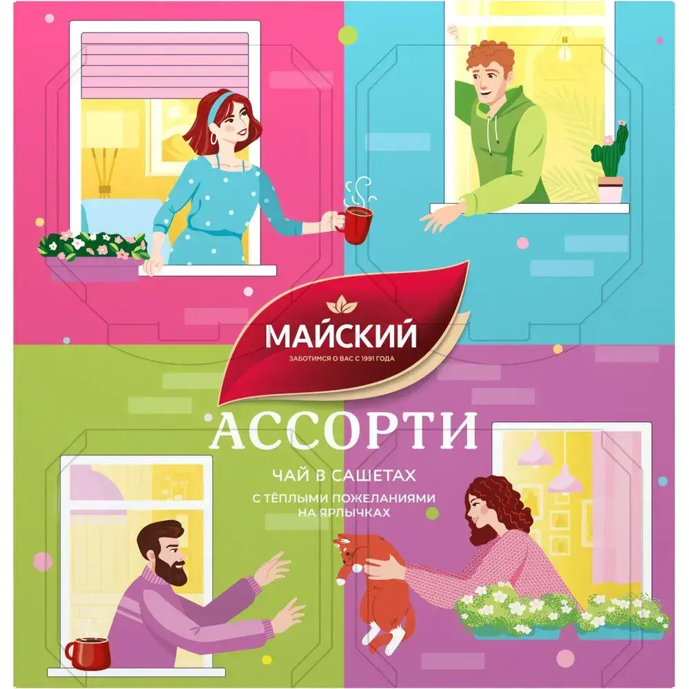 Чайное ассорти Майский Окна: Сердце Цейлона, Сладкая малина, Душистый чабрец, Ароматный бергамот, 20 шт
