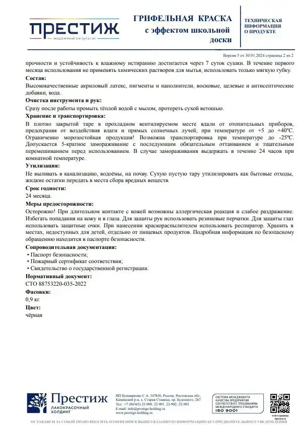 Черная ГРИФЕЛЬНАЯ КРАСКА 0.9 кг Престиж Мастер. Краска с эффектом школьной доски