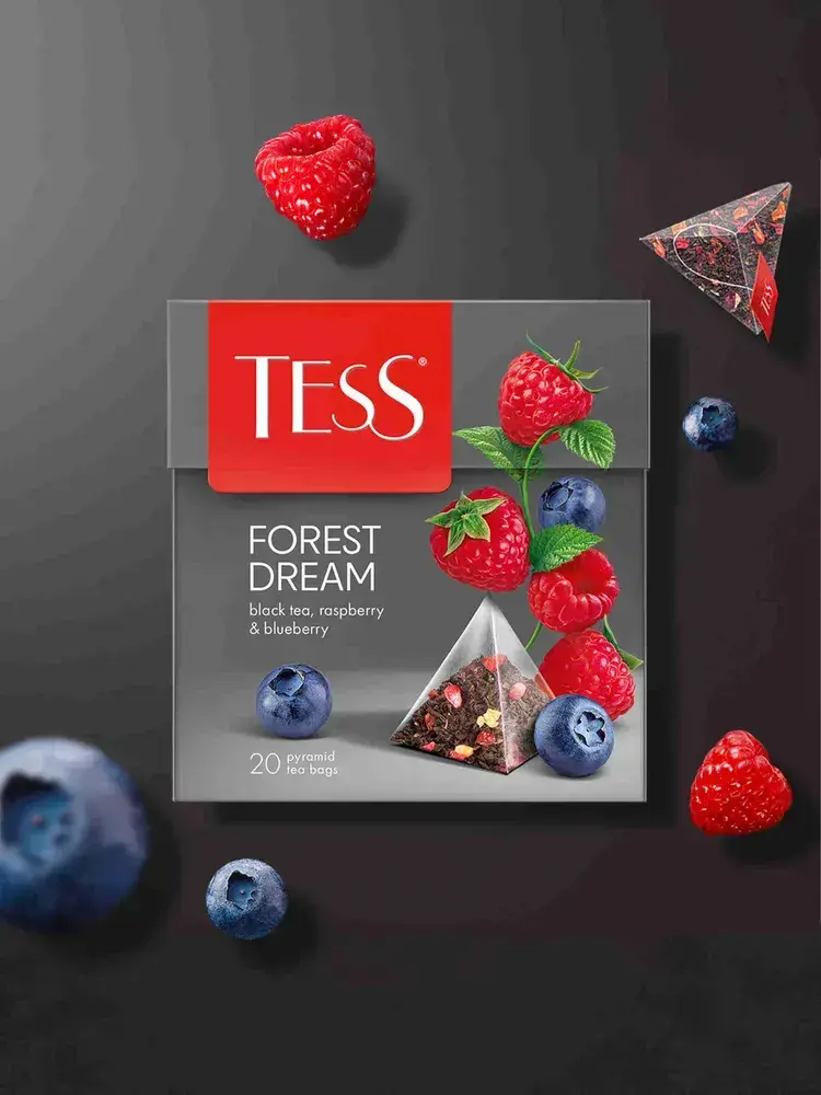 Черный чай с малиной и ароматом черники Tess Forest Dream в пирамидках, 20 шт