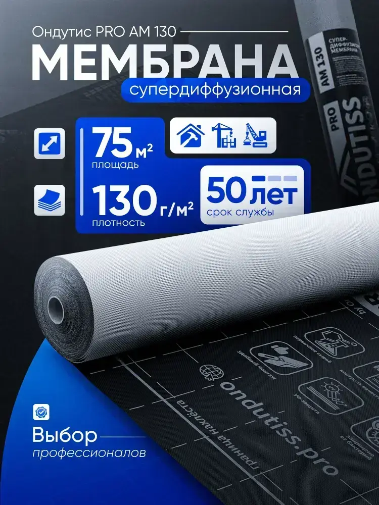 Cупердиффузионная гидроизоляционная мембрана для кровли и стен Ондутис ПРО АМ 130 (Ondutiss PRO AM 130), 75м2