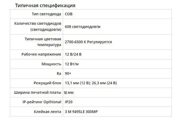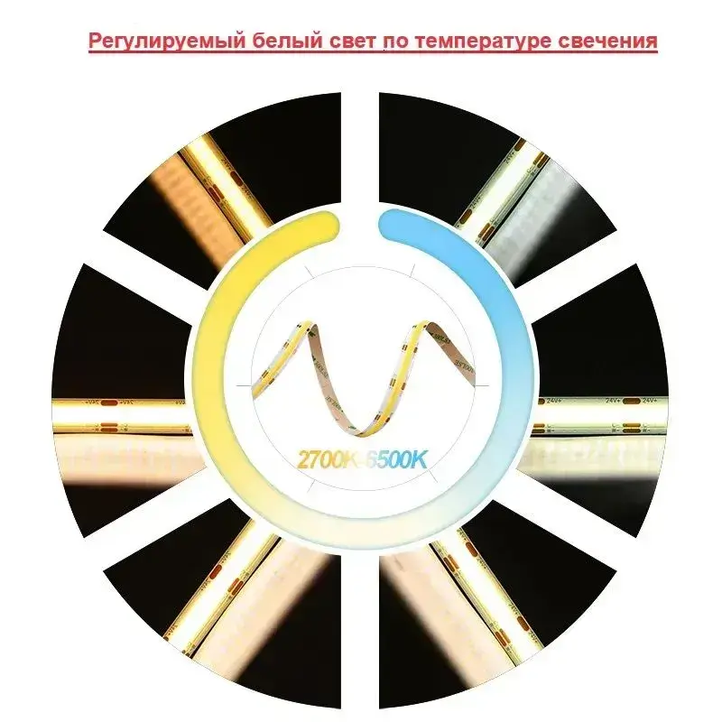 Cветодиодная лента COB CCT, 5м, 24V, 608led/м, 14 Вт/м, 1350 Лм/м