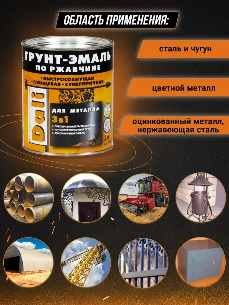 Дали (dali) ГРУНТ - ЭМАЛЬ по ржавчине краска для металла , серый графит RAL 7024, 2 л