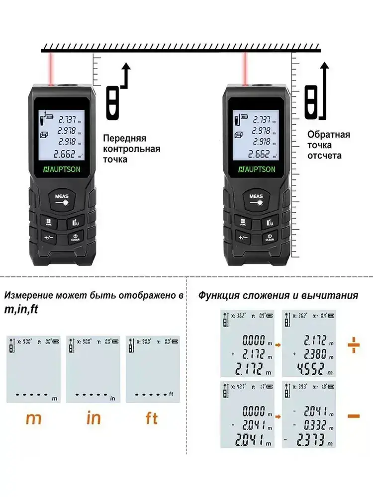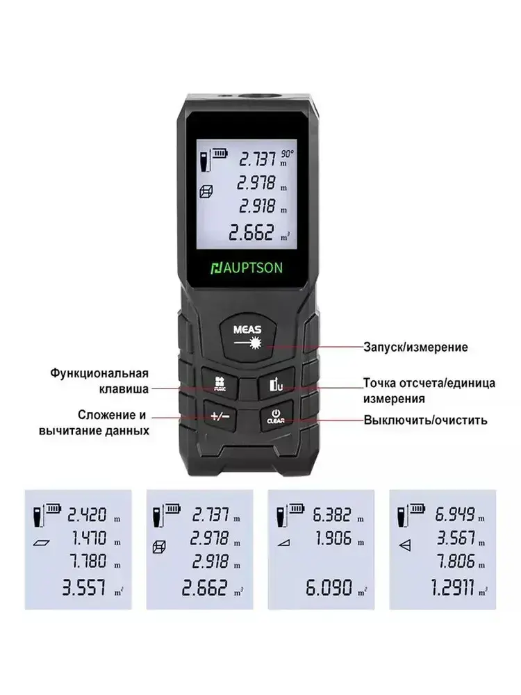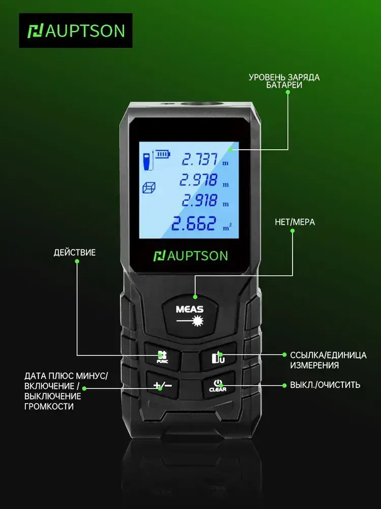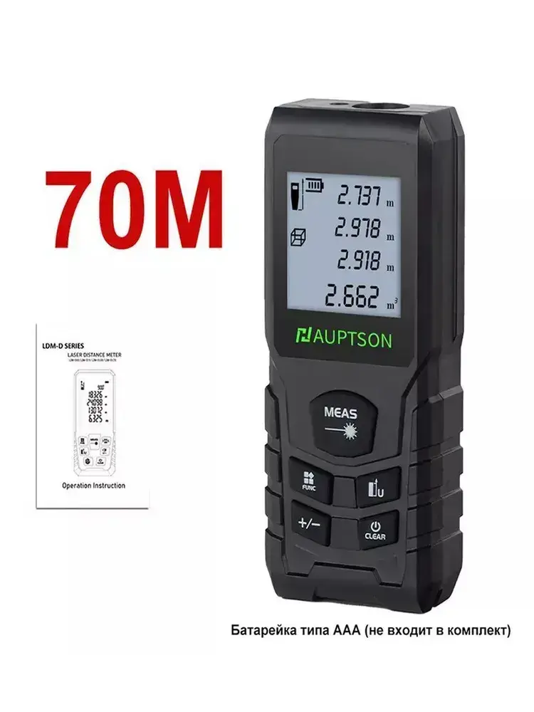 Дальномер лазерный, 70M, Лазерный дальномер, АКБ*2, рулетка строительная