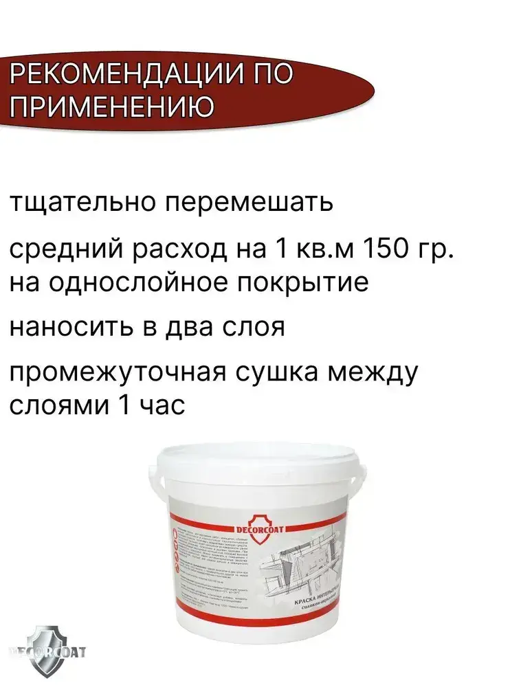 DECORCOAT Краска Быстросохнущая, Акриловая, Силиконовая, Матовое покрытие, 1.2 кг, белый