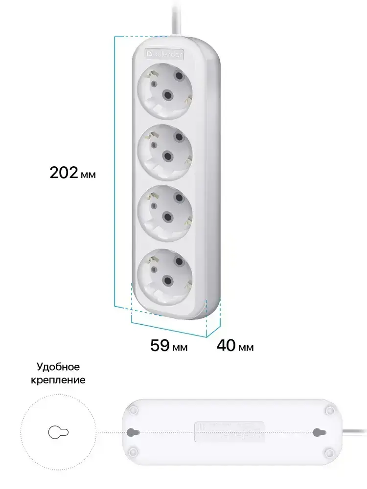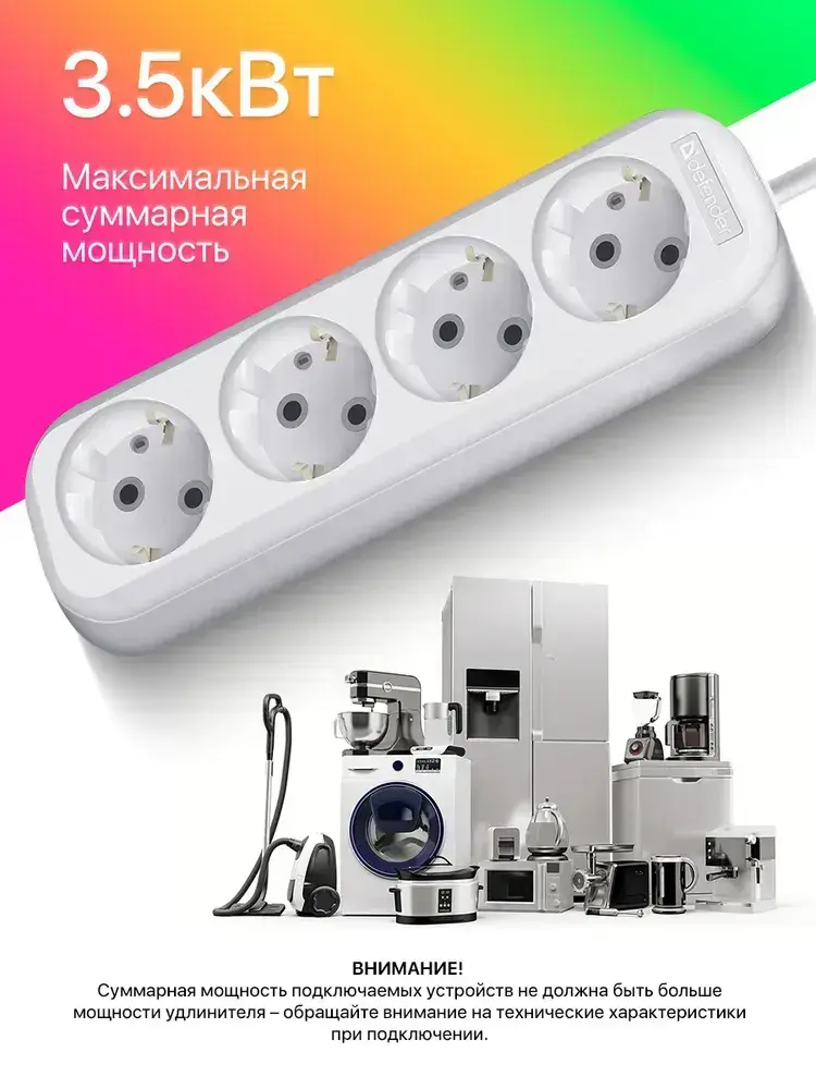 DEFENDER Удлинитель сетевой 2м, 4 розетки с заземлением, 16А