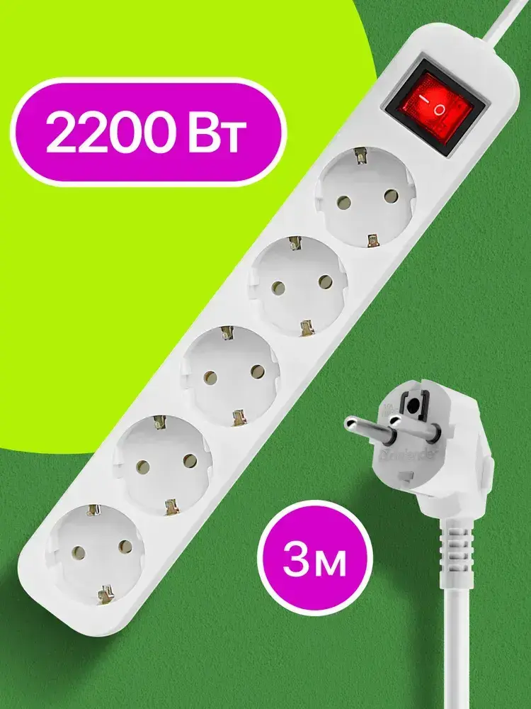 Defender Удлинитель сетевой 3 м с заземлением, на 5 розеток с выключателем