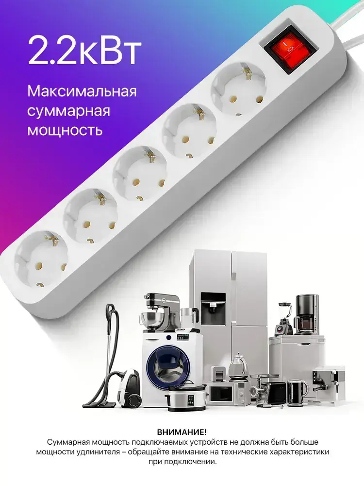 Defender Удлинитель сетевой 5 м с выключателем, 5 розеток с заземлением