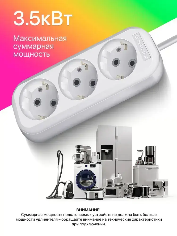 DEFENDER Удлинитель сетевой 5м, 3 розетки с заземлением, 16А