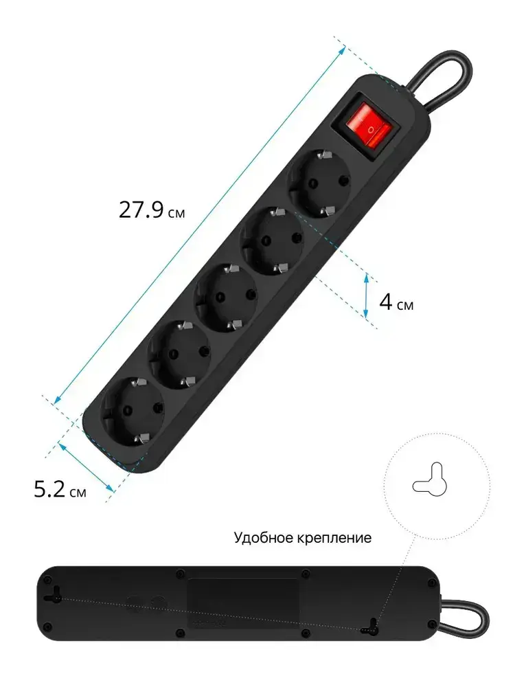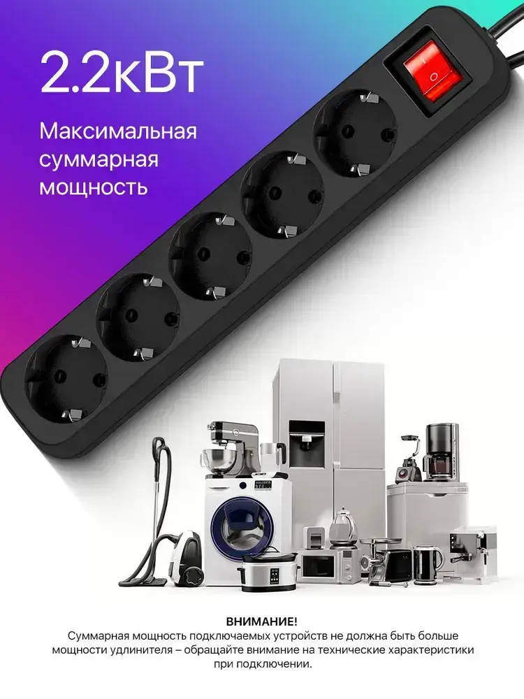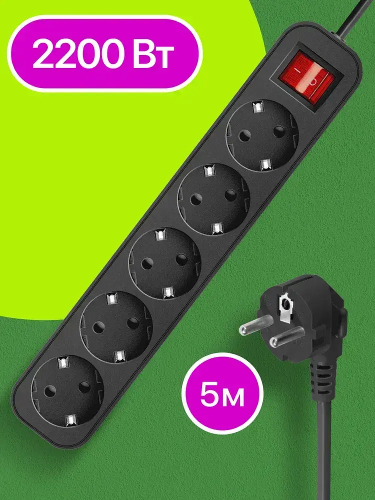 DEFENDER Удлинитель сетевой 5м G550 черный с выключателем, 5 розеток с заземлением