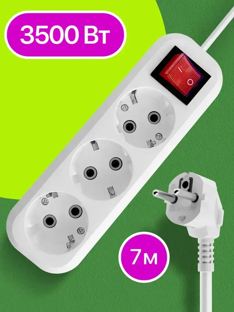 Defender Удлинитель сетевой 7м с выключателем, 16А, 3 розетки с заземлением