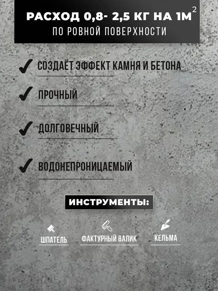 Декоративная штукатурка SYIFAT 9кг Арт-Бетон Цвет: Серый лофт Фактурная Универсальная Готовая смесь Для Стен Для ванной Без запаха Влагостойкая