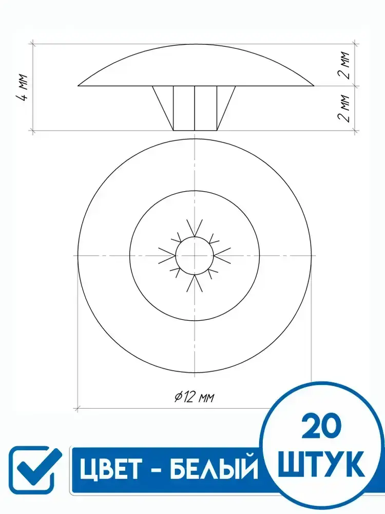 Декоративный колпачок для самореза 12 x 20 шт.