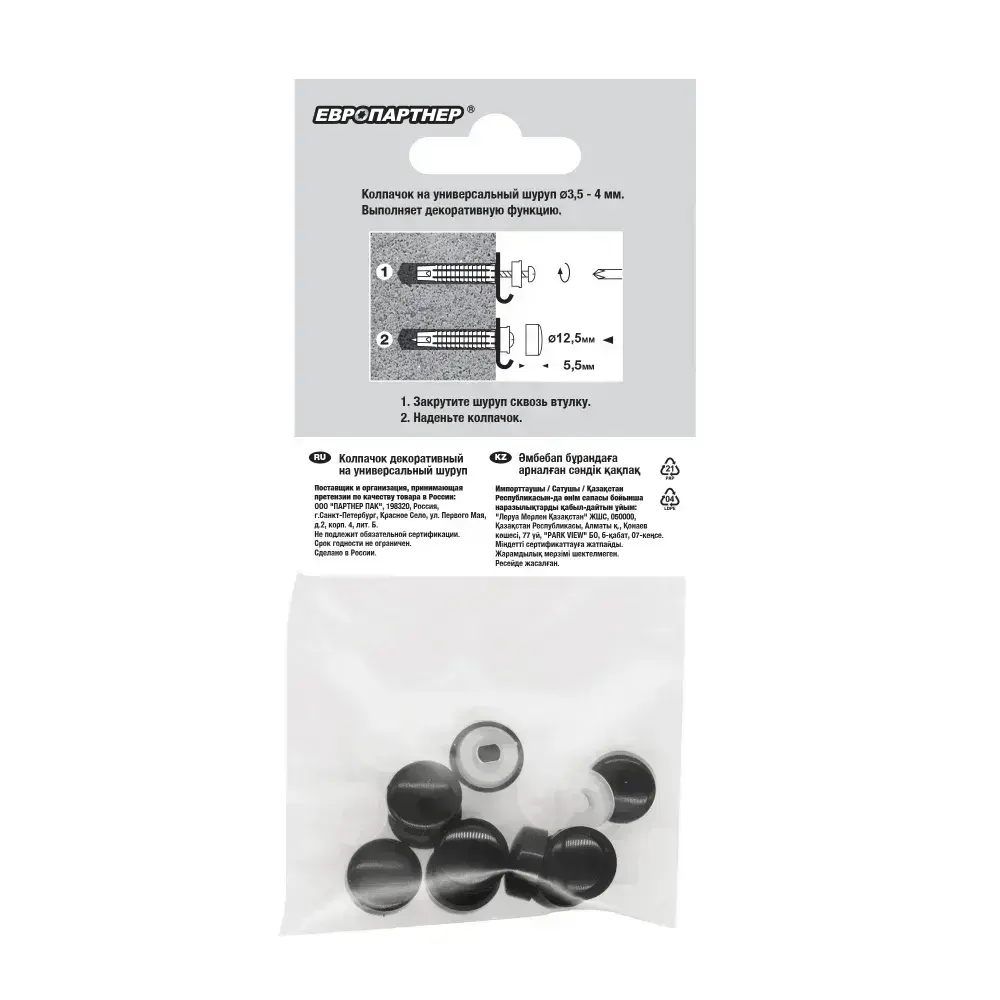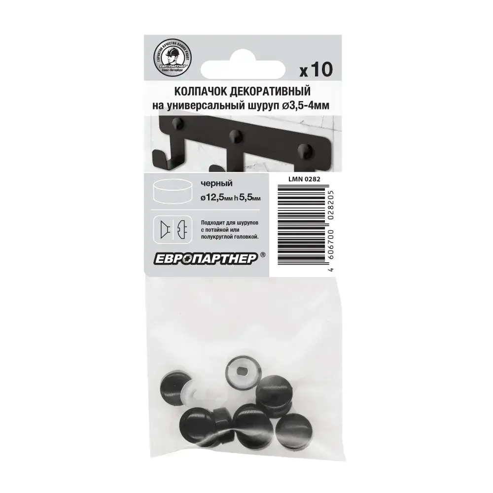 Декоративный колпачок на универсальный шуруп D3,5-4,0мм черный (10 шт.)