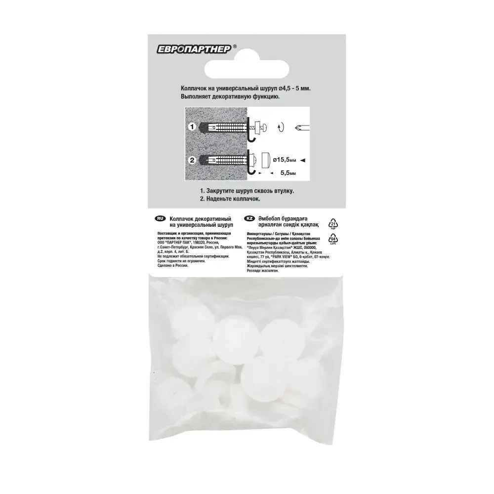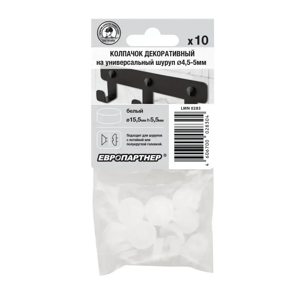 Декоративный колпачок на универсальный шуруп D4,5-5,0мм белый (10 шт.)