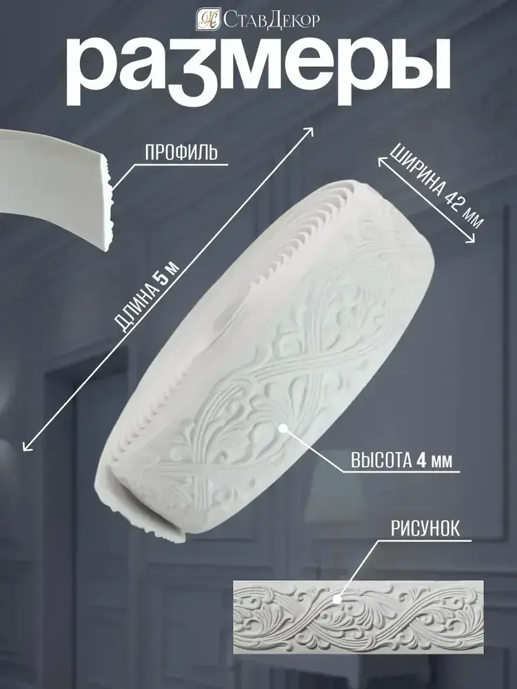 Декоративный молдинг 5м аксессуар для мебели стен и интерьера из ПВХ