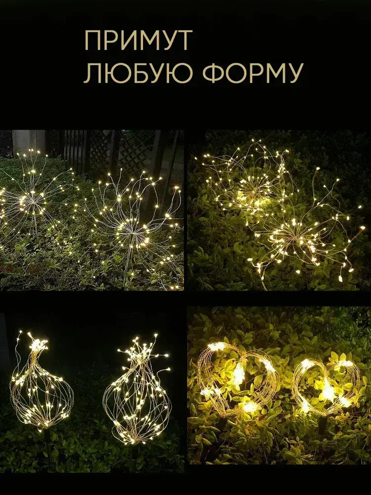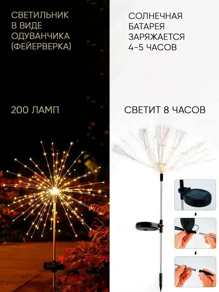 Декоративный садовый уличный светильник 200 ламп на солнечной батарее "Фонарик Фейерверк"