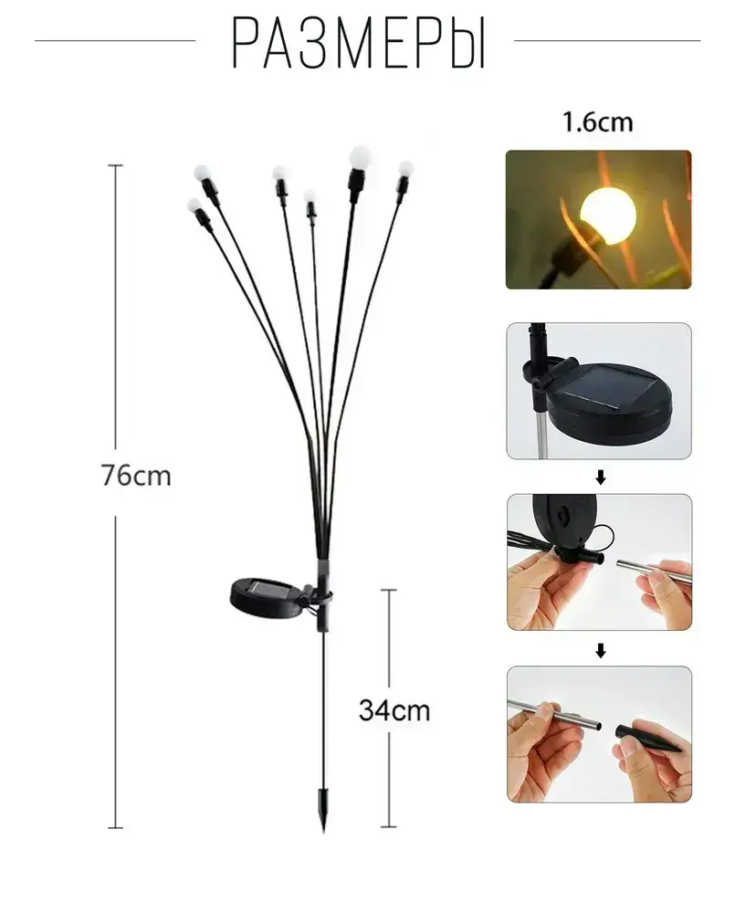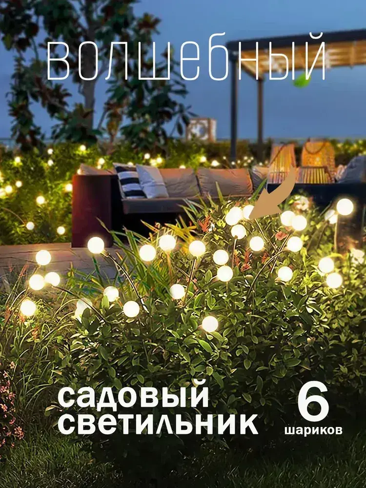 Декоративный садовый уличный светильник 6 ламп на солнечной батарее "Фонарик светлячок"