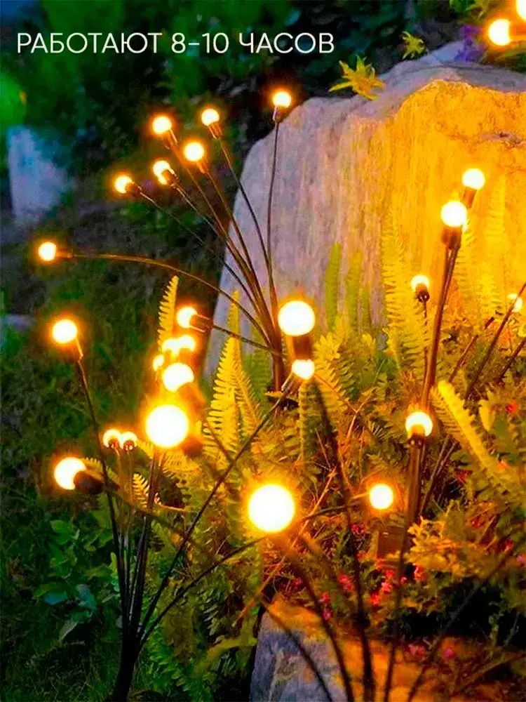 Декоративный уличный светильник 10 ламп на солнечной батарее "Фонарик светлячок"