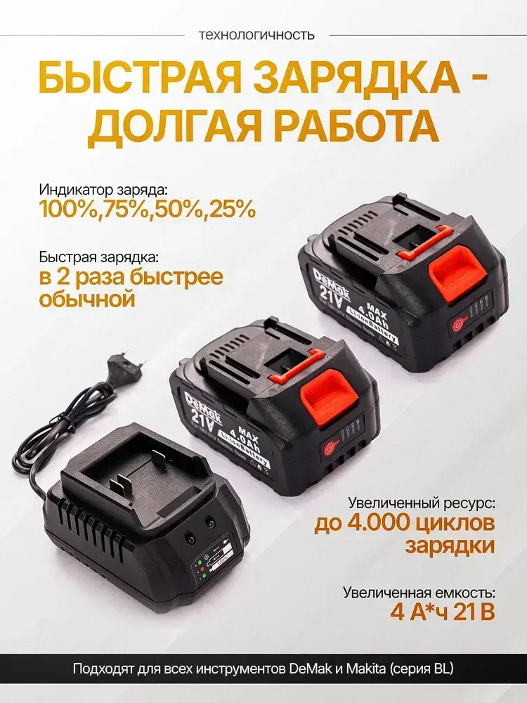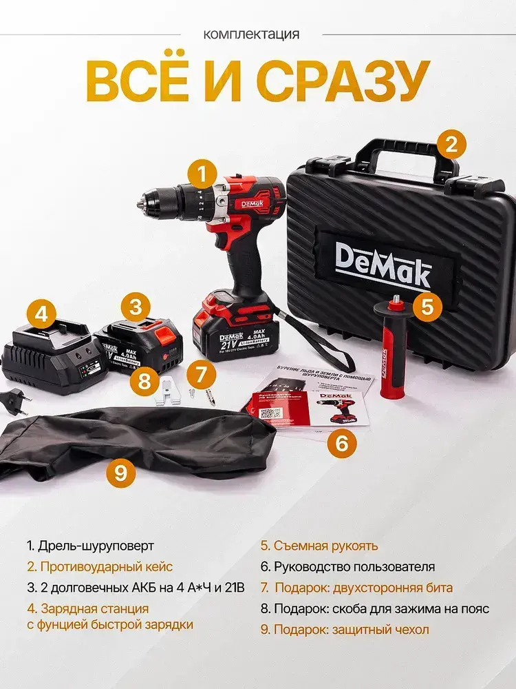 DeMak Дрель-шуруповерт, 21 В, 120 Нм, 2 АКБ