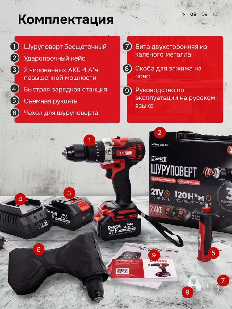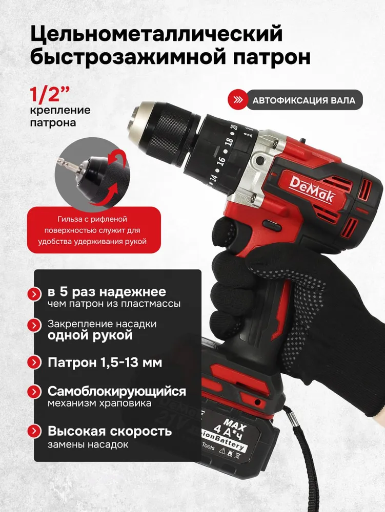 DeMak Шуруповерт, 21 В, 120 Нм, 2 АКБ