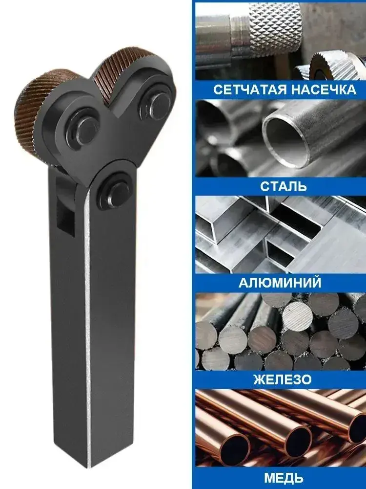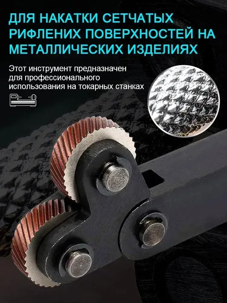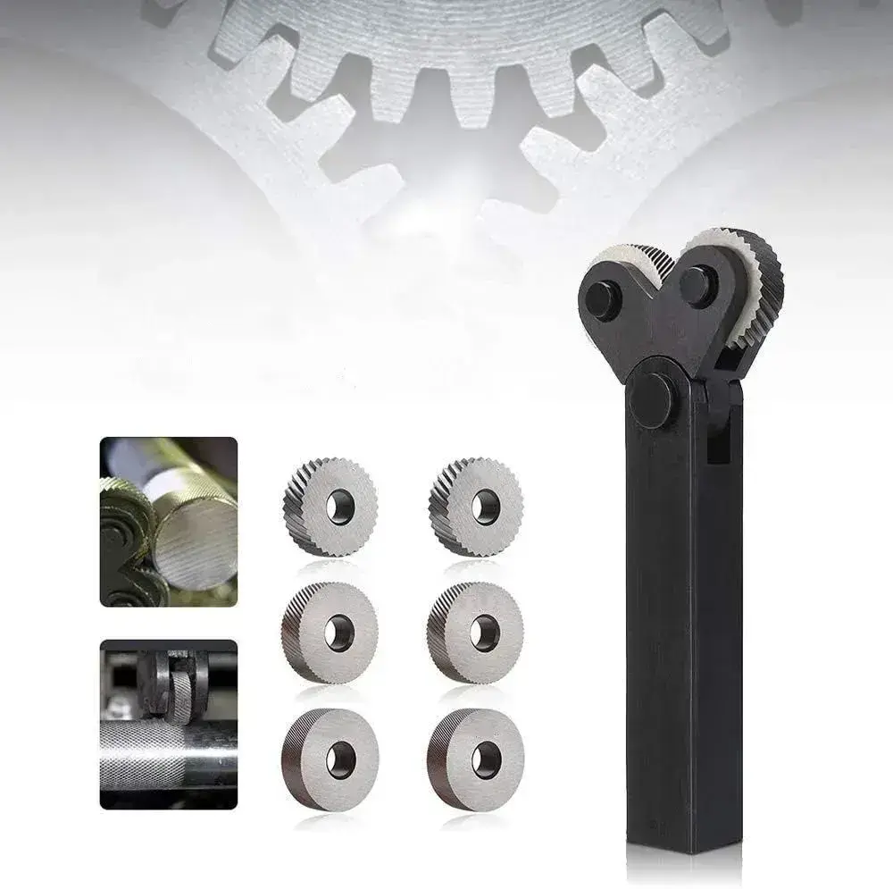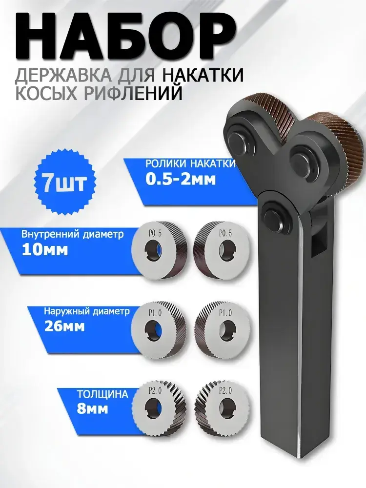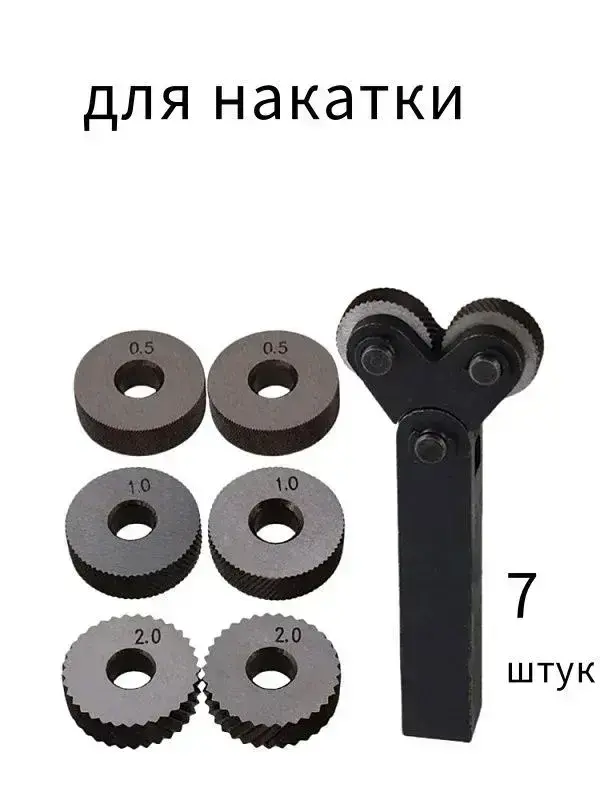 Державка для накатки косых рифлений / Набор инструментов со шкивом 25 мм для накатки на два колеса, 7 шт, для токарных станков