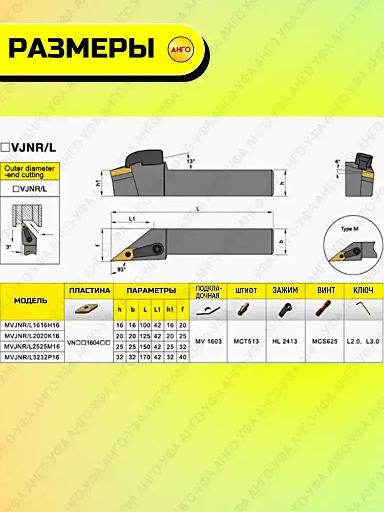 Державка MVJNR2525M16 + 5 пластин VNMG1604** резец для наружного точения по металлу АНГО-УФА
