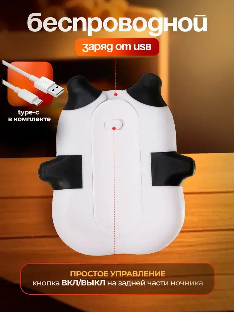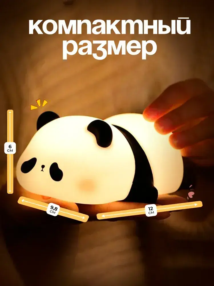 Детский ночник с таймером Панда силиконовый, беспроводной светильник для малышей