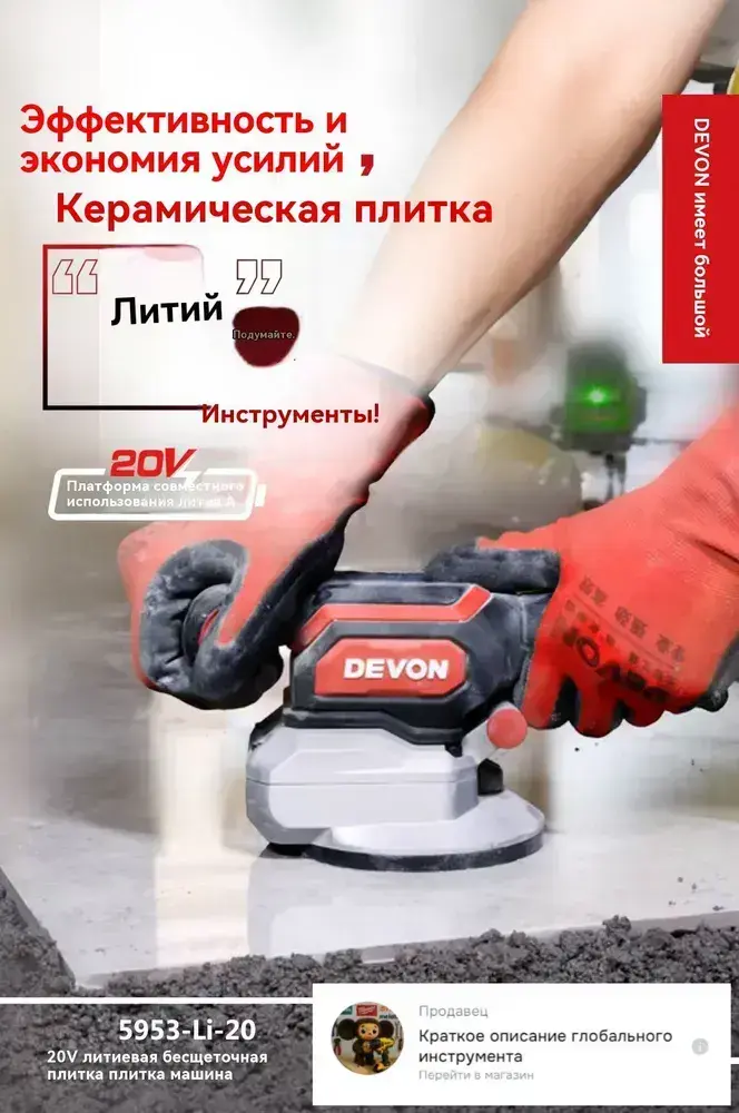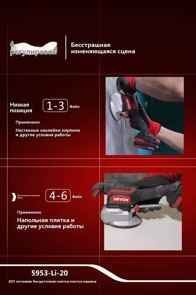 DEVON Литиевый бесщеточный выравниватель плитки 5953-li-20