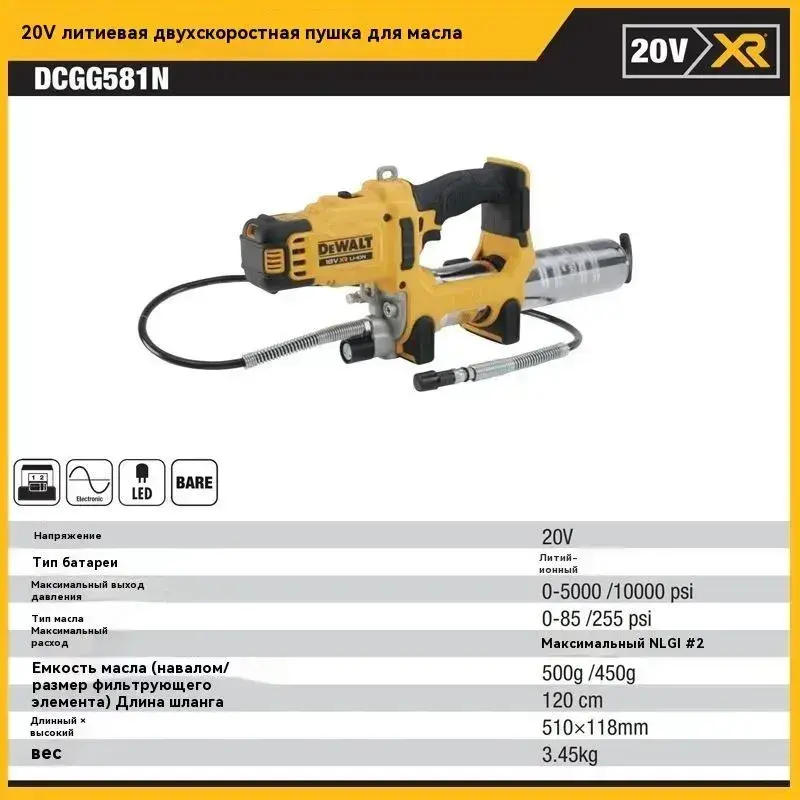 DEWALT DCGG581 20V аккумуляторный шприц для смазки с высоким давлением подачи