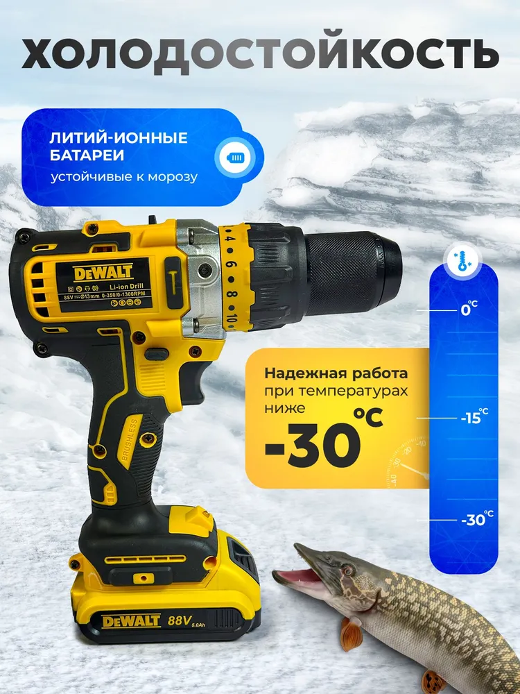 DeWalt Дрель-шуруповерт, шуруповерт ледобур, 36 В, 120 Нм, 2 АКБ
