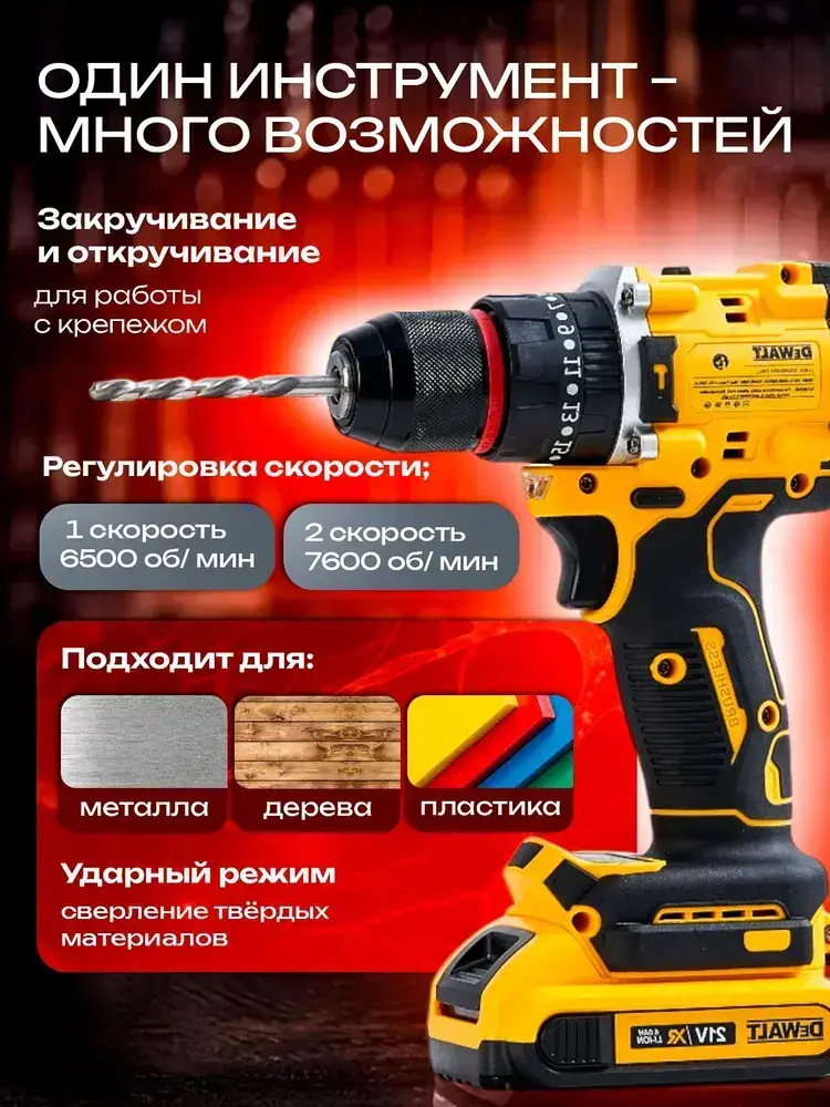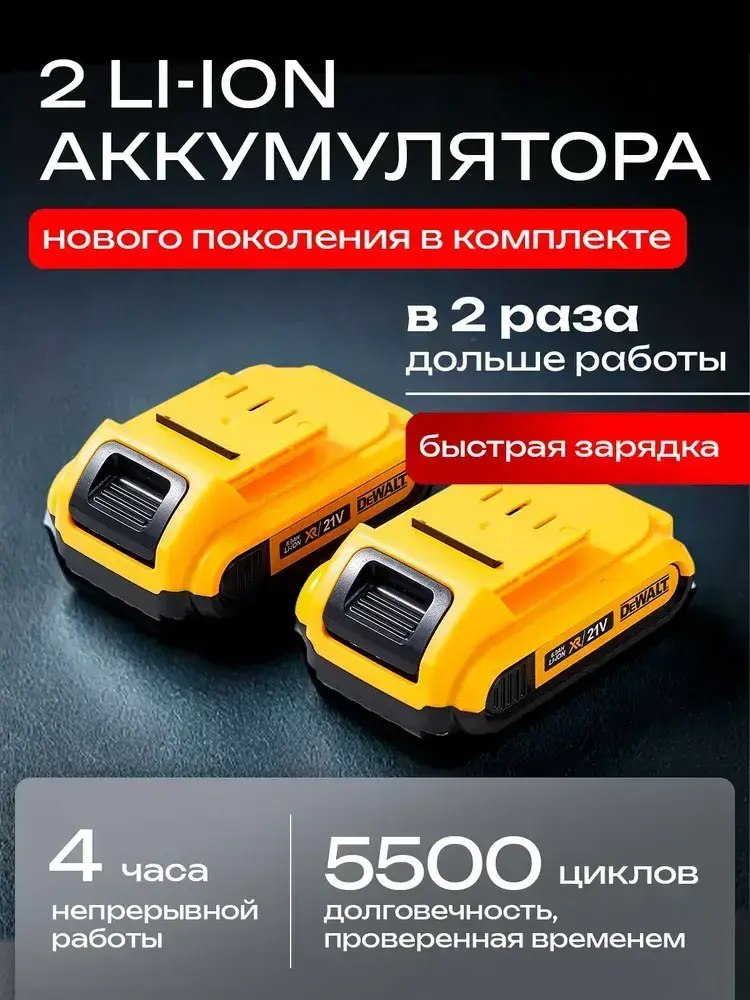 DeWALT Шуруповерт аккумуляторный бесщёточный (21V 2300 об/мин 80 Нм), дрель шуруповерт аккумуляторная, 2АКБ