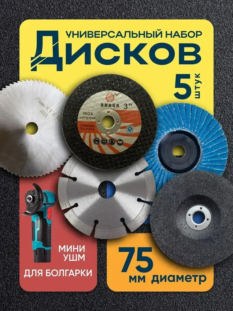 Диск 75 мм, диски для болгарки мини ушм, Shoppy, набор 5 шт, 75 мм