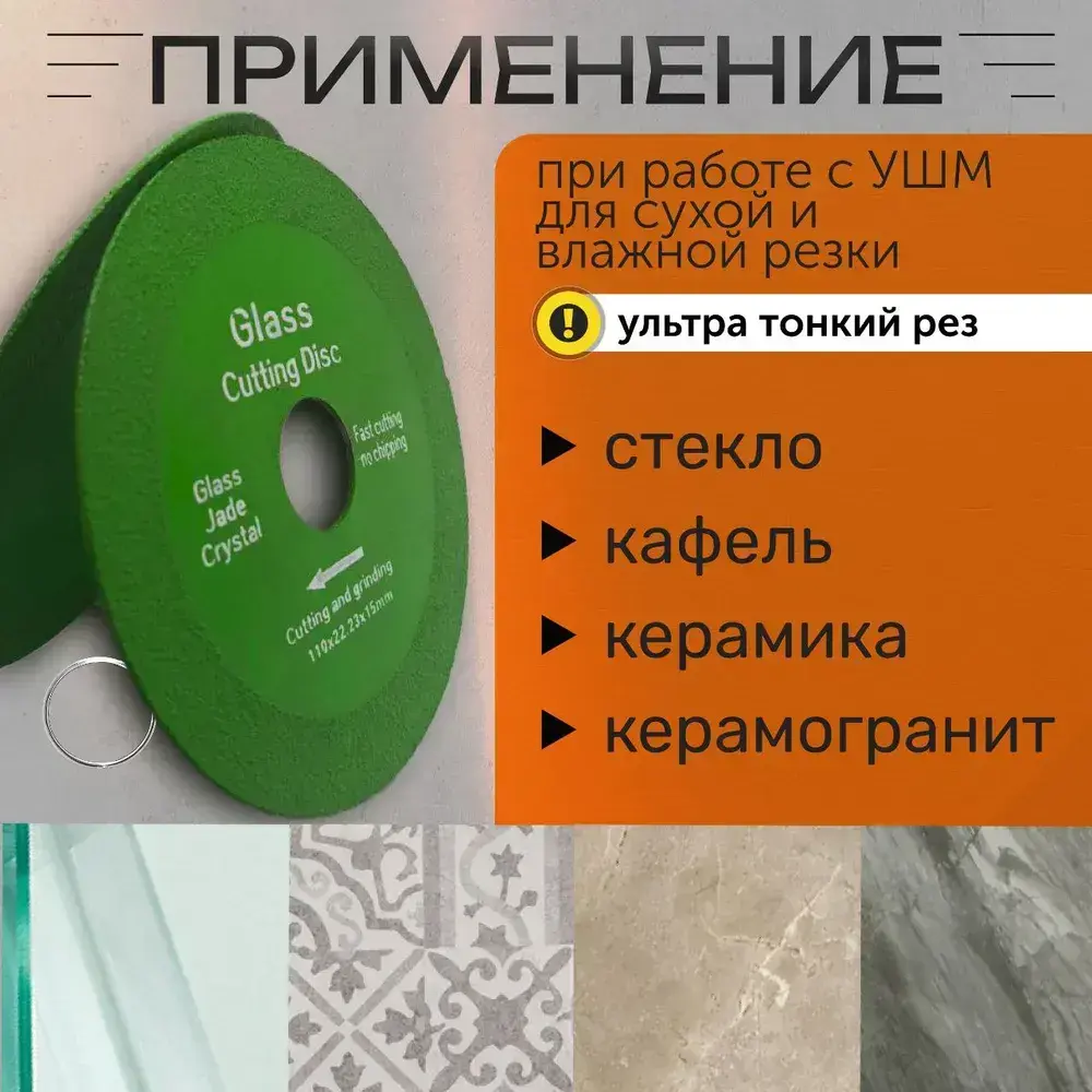 Диск алмазный 110*22.3*15 для резки стекла керамики кафеля и камня