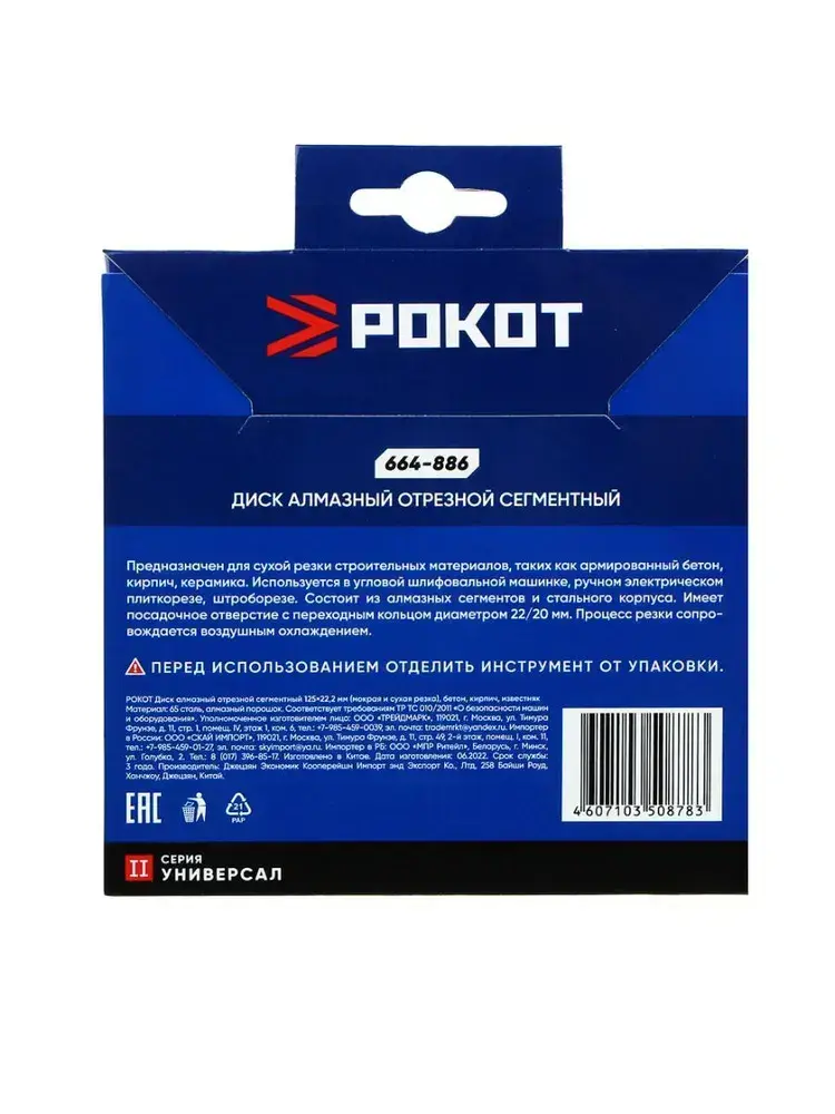 Диск алмазный 125мм сегментный (сухой рез)-3шт. Круг для резки армированного бетона, камня, кирпича, керамики
