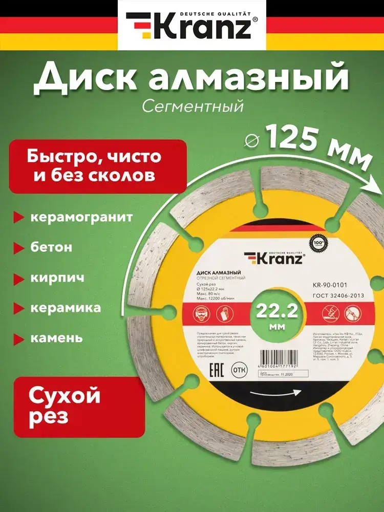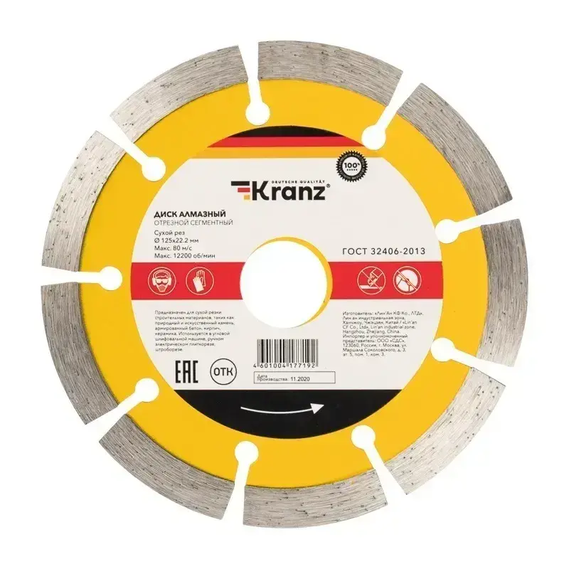 Диск алмазный для болгарки УШМ KRANZ сегментный 125 мм