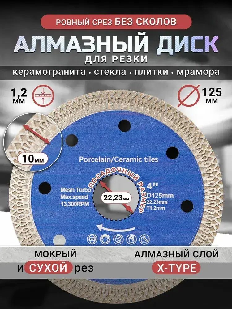 Диск алмазный отрезной, сухая резка, 125мм * 1,2 мм * 22,23 мм