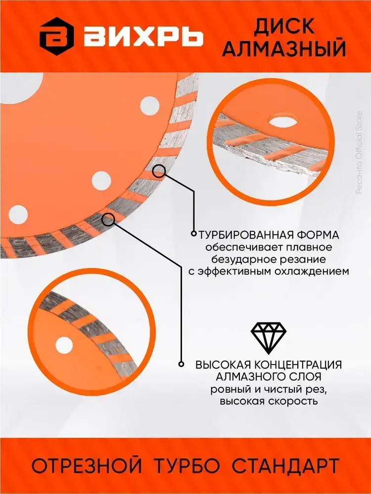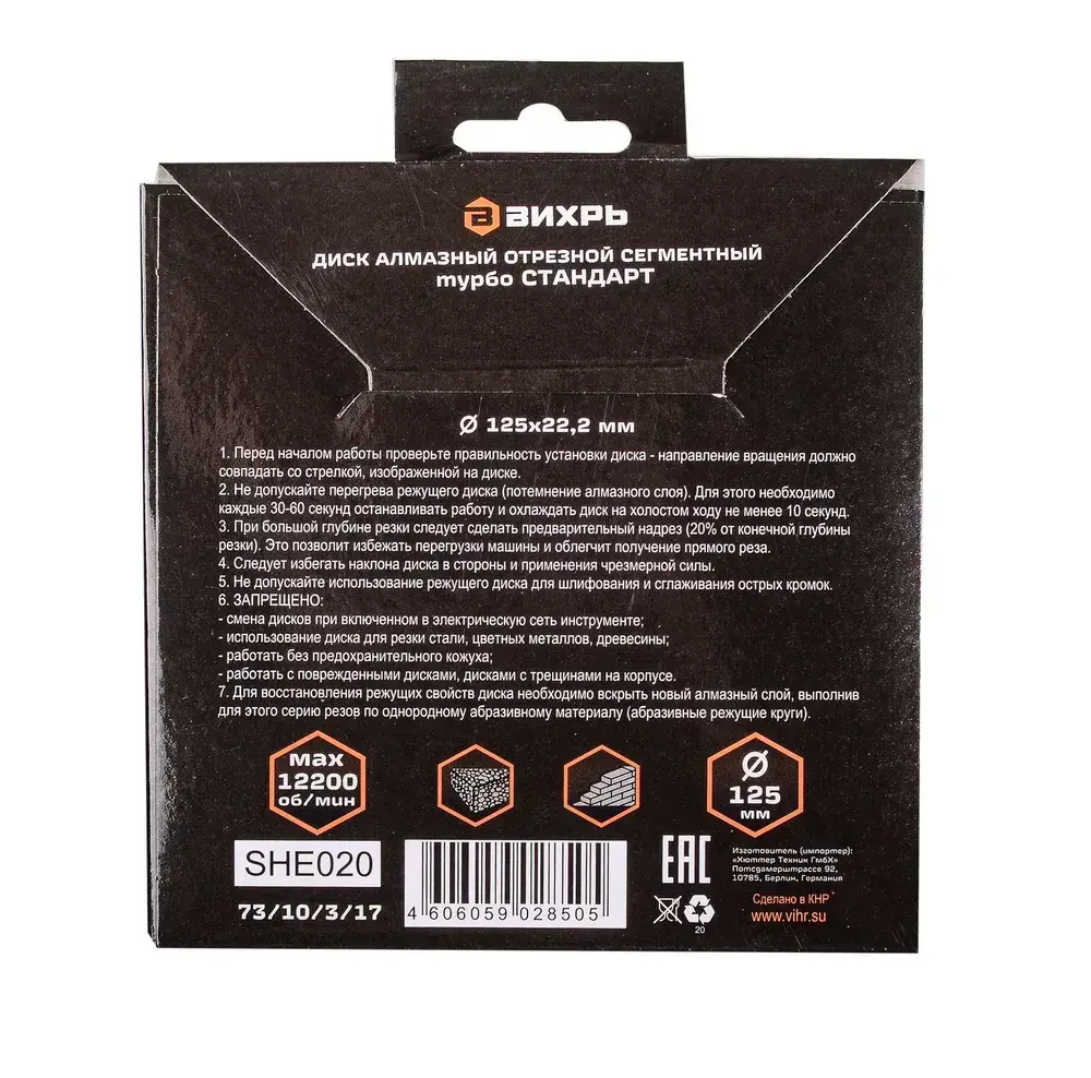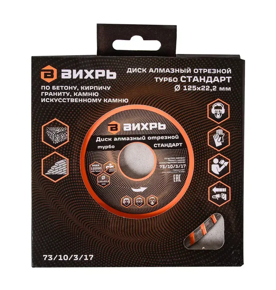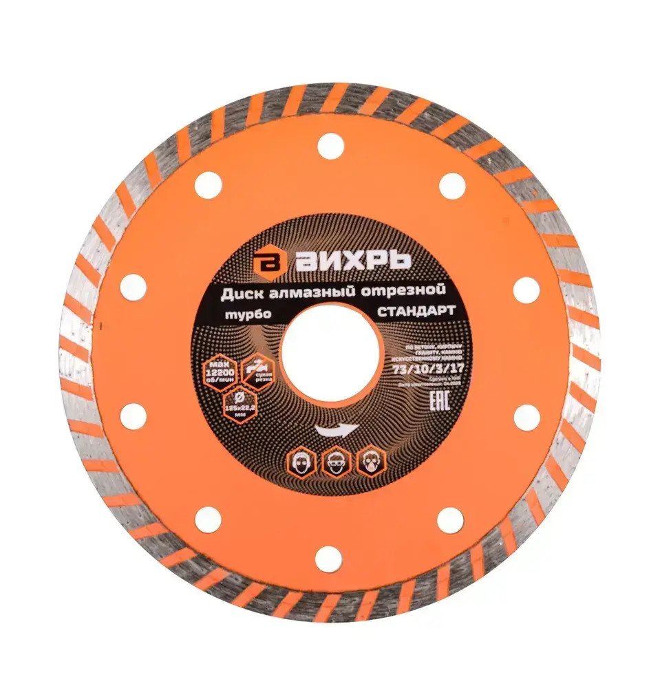 Диск алмазный отрезной Турбо СТАНДАРТ, 125 х 22,2 мм, сухая резка Вихрь