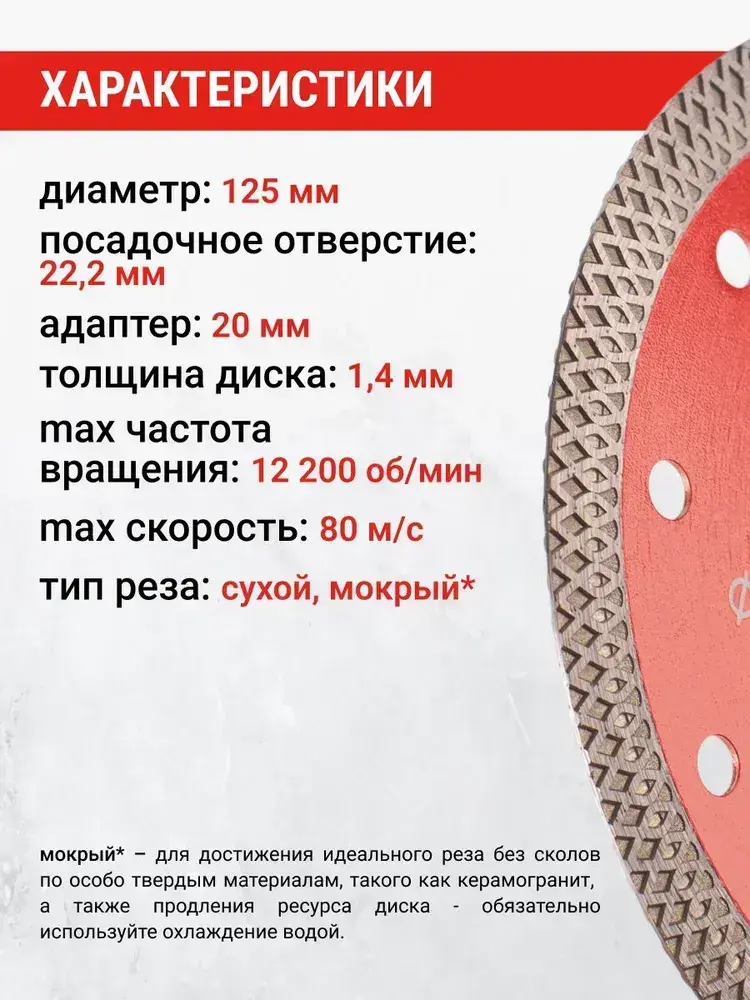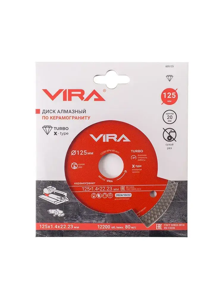 Диск алмазный по керамограниту тонкий 125 мм X-Type VIRA