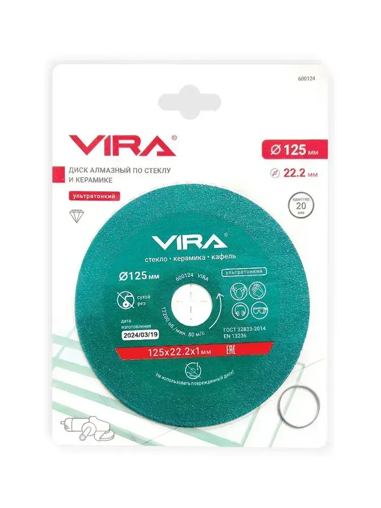 Диск алмазный по стеклу и керамике 125 мм VIRA