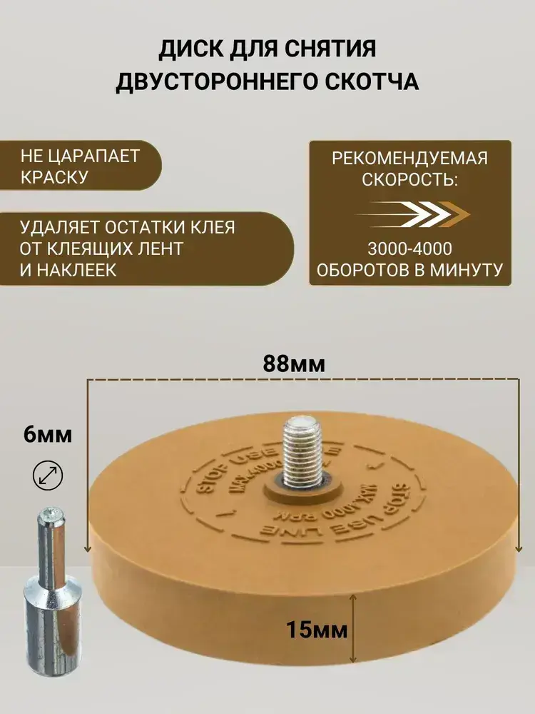 Диск для снятия двухстороннего скотча, следов клея, зачистной резиновый, диск для удаления скотча