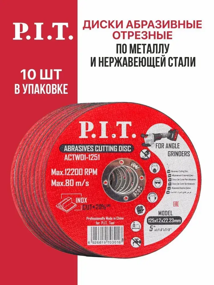 Диск отрезной 125 по металлу P.I.T. 125x22,2x1,2 мм 10 шт в уп.(ACTW01-1251)