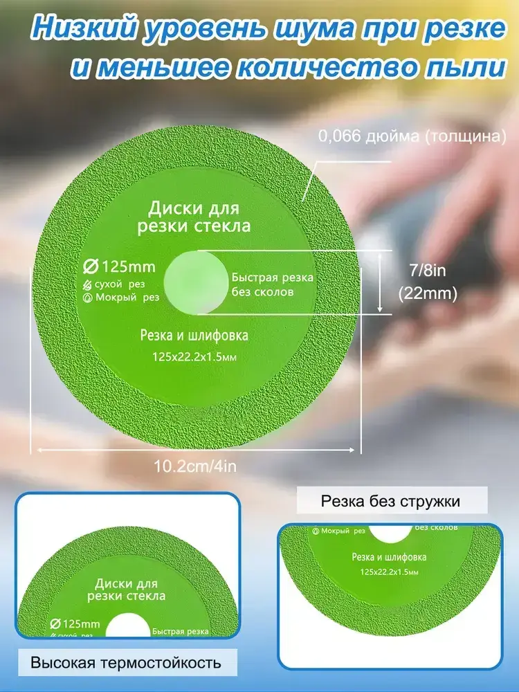 Диск отрезной 3шт. 125 x 1.5 x 22,23 для резки стекла, керамической плитки, керамогранита.