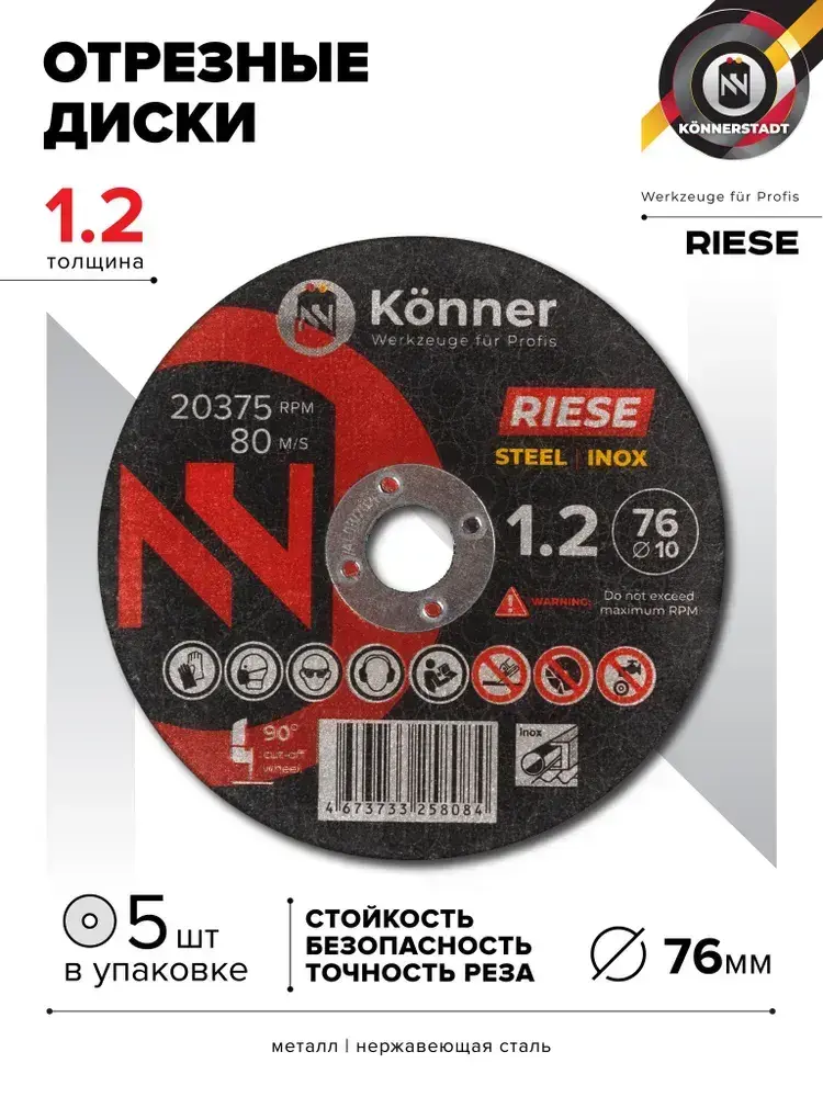 Диск отрезной KONNER RIESE 76x1.2x10 (5 шт)