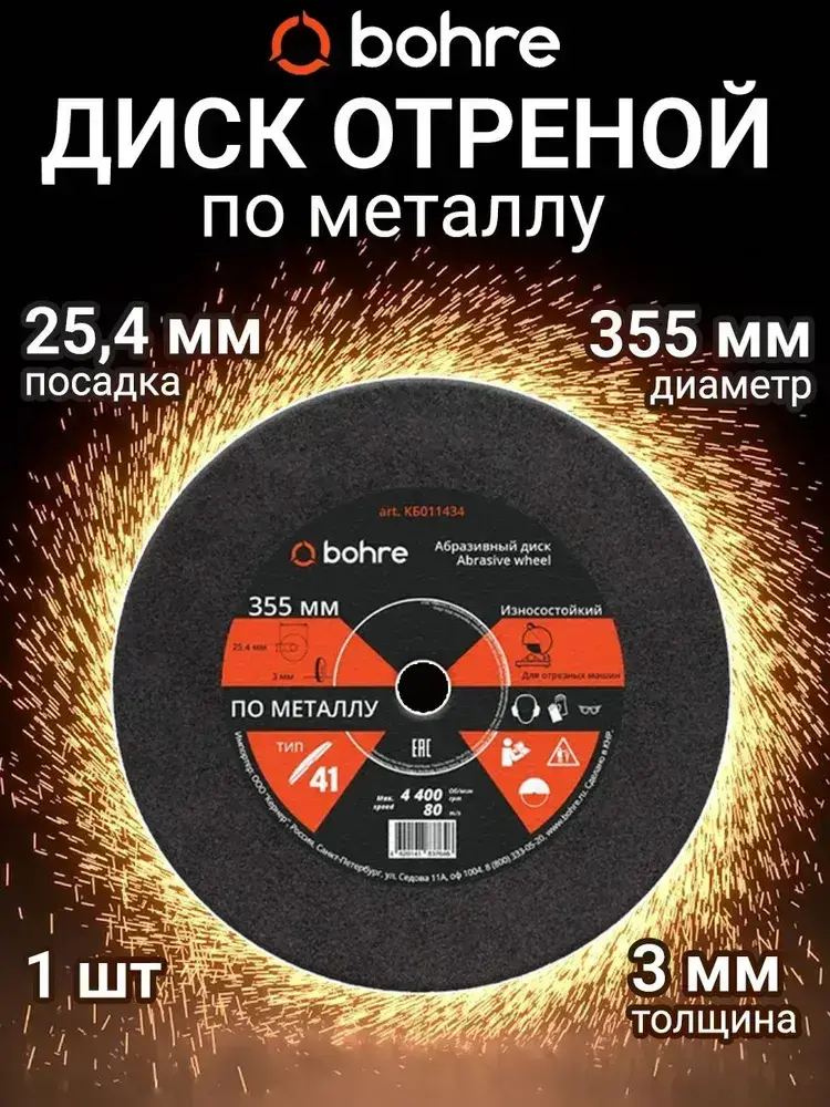 Диск отрезной по металлу Bohre 355х3х25,4 / круг отрезной по металлу