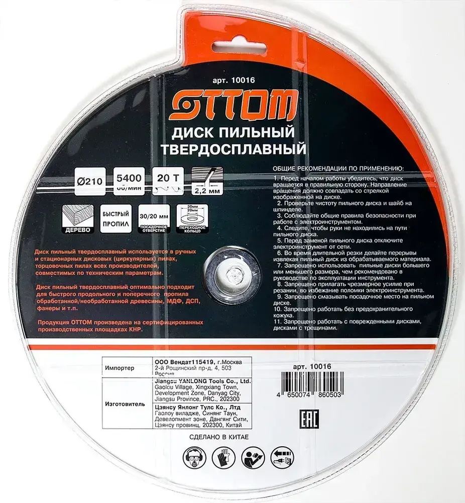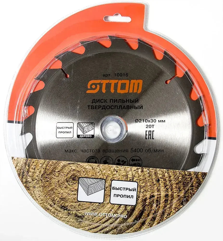 Диск пильный OTTOM 10016 210x30/20-20т (быстрый пропил)